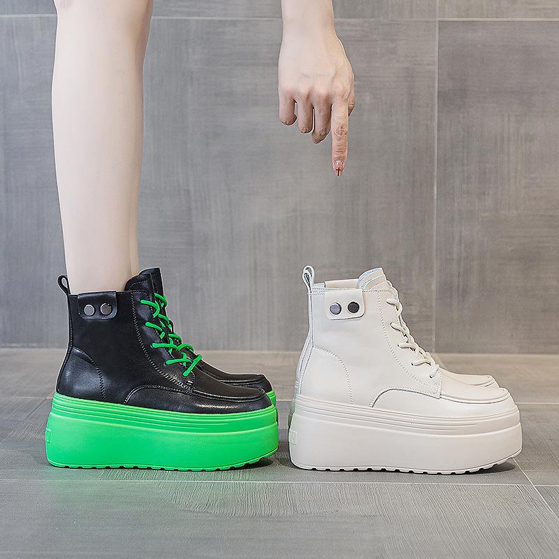 Autumn and Winter New Women's Medium-top Thick-soled Muffin Shoes Women's 2025 New Candy Color Round Head Fashion Simple Pure