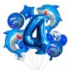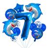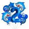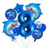 14Pcs Sea Animal Shark Birthday Party Balloon Decoration Blue Number Baby Shower Balloons Shark Cartoon Aluminum Foil Balloon