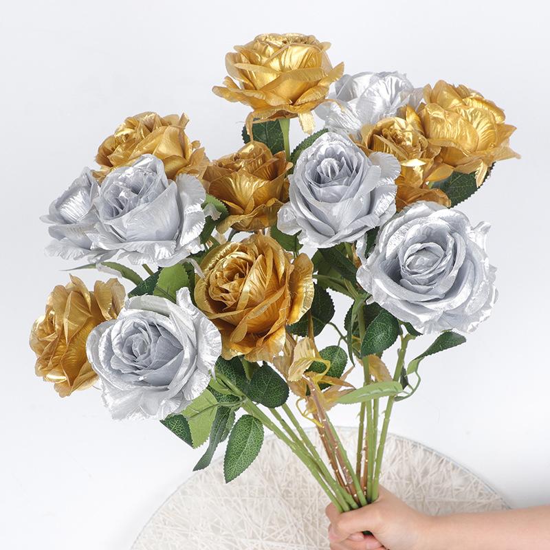 6 Pcs-Artificial Gold Rose Scene Decoration Party Wedding Roadside Flower Arrangement Home Decoration Birthday Party Decor