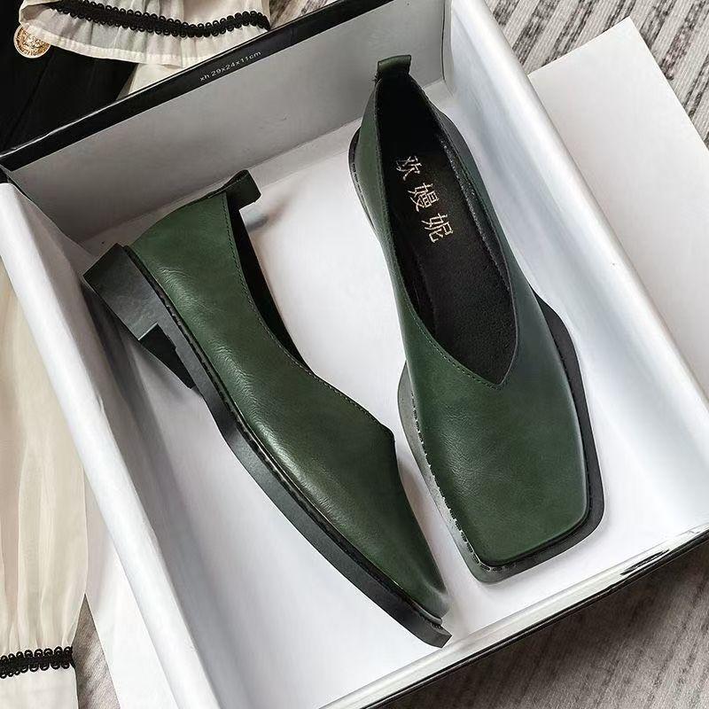 Grandma Shoes Boat Shoes Casual Women's Shoes Flat Bottom Niche Square Head Shallow Mouth Single Shoes Summer and Autumn New French Versatile