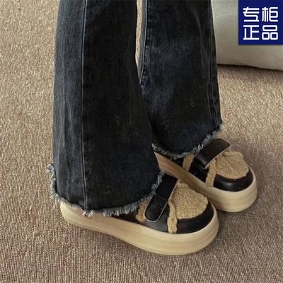 Thick-soled Fluffy Women's Shoes Wear High-value Thermal Cotton Women's Shoes Velcro Fleece Board Women's Shoes