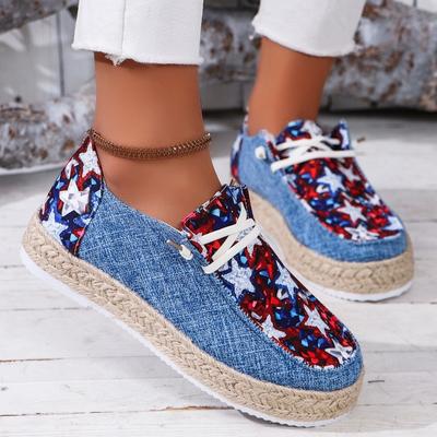 Spring and Autumn Low-top Canvas Shoes Flat Heel Star Stripe Print Lace-up Women's Shoes Casual and Comfortable Single Shoes