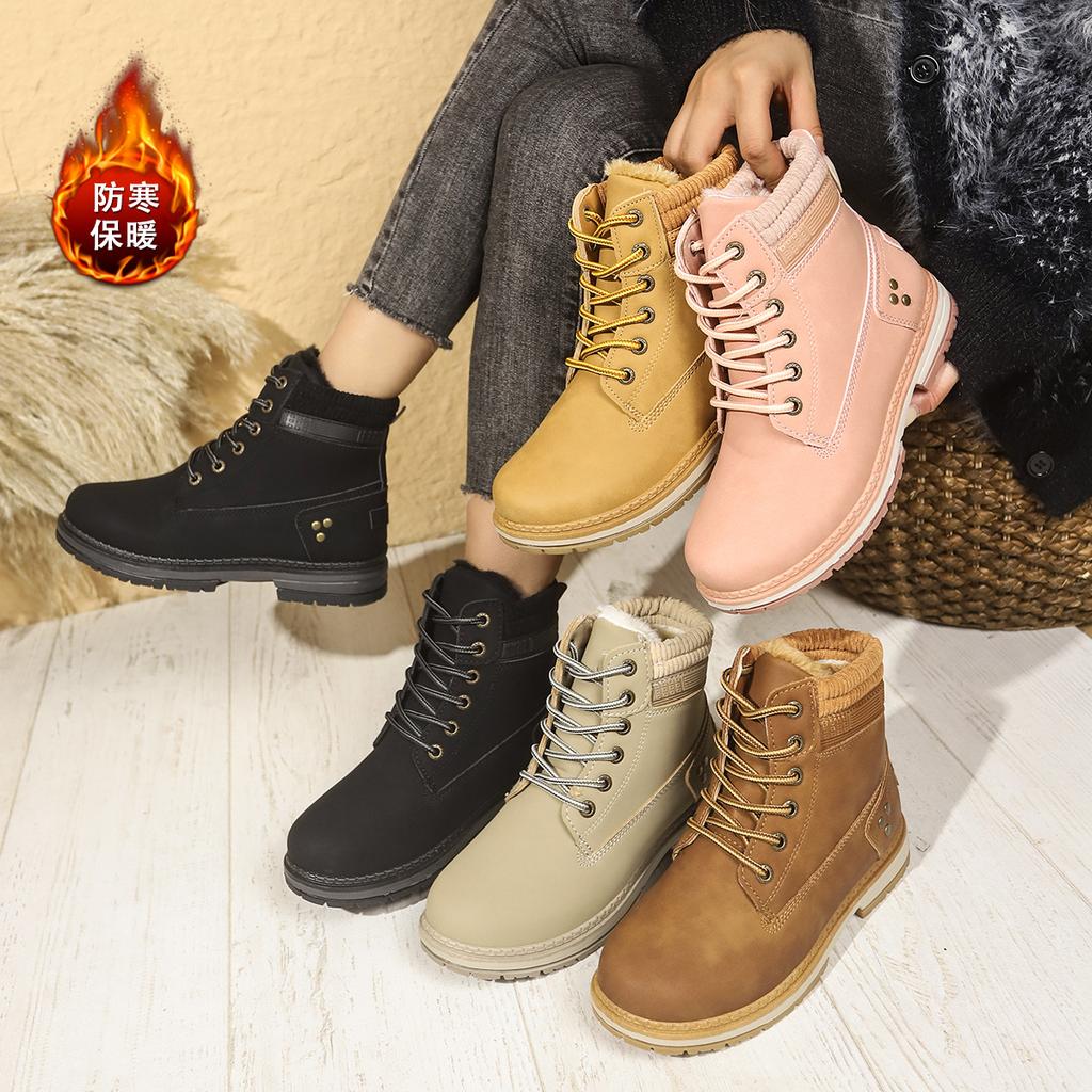 New Velvet Women's Martin Boots British Casual Large Size Flat-bottomed Warm Short Boots Non-slip Women's Shoes