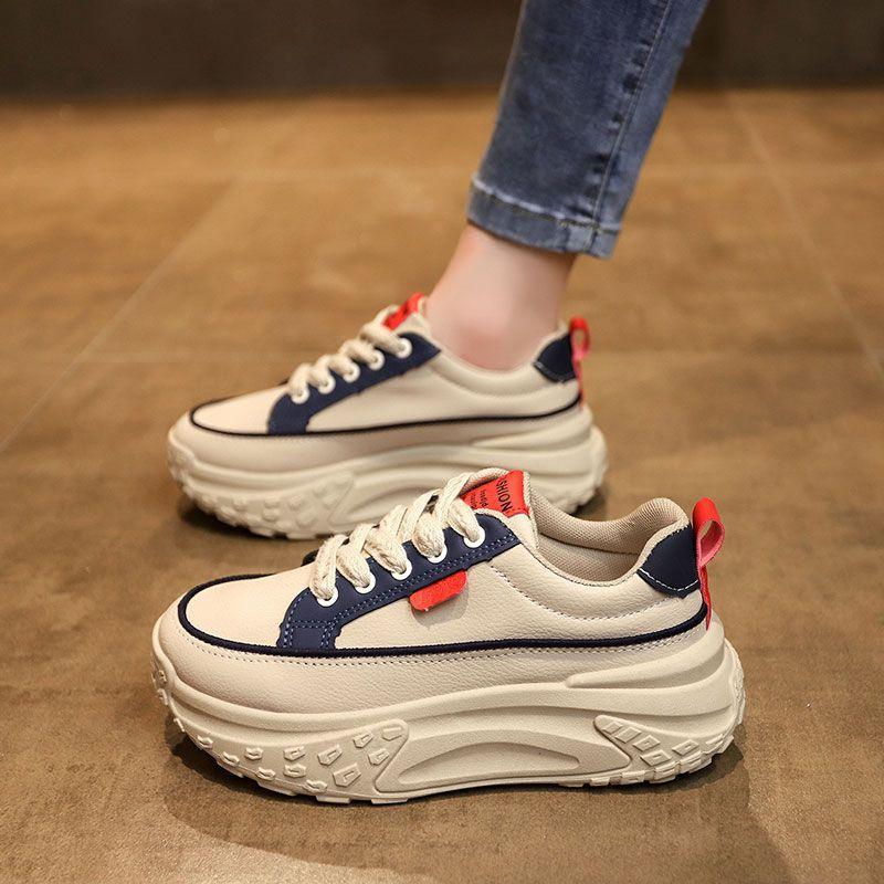 Casual Shoes New Color Matching Dad Shoes Thick Sole Heightening Leather Surface Sports Shoes Women's Shoes Fashion Student