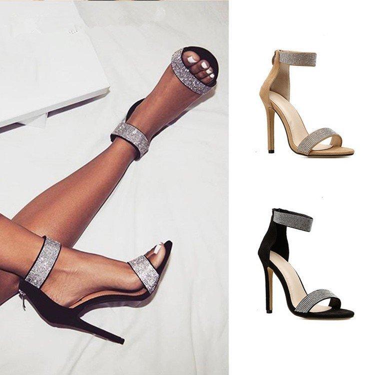 Large Size High-heeled Sandals European and American Rhinestone Thin Heel One-character Foot Cover Sexy New Fashion Sandals