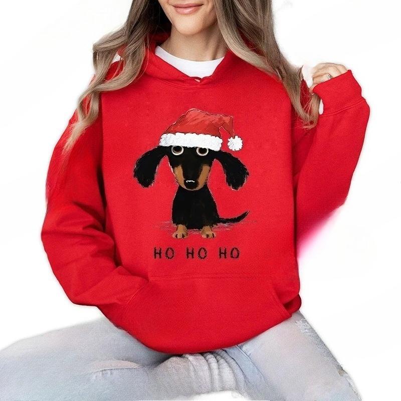Christmas Dachshund Printed Hooded Sweatshirt Merry Christmas Women's Loose Fleece Hoodies Xmas Dog Cartoon Anime Hoody Clothing