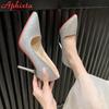 Aphixta Bling 10cm Thin Heels Pointed Toe Pumps Women Sequined Leather Shoes Dress Casual Wedding Party Super Plus Size 50