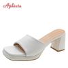 Aphixta Plus Size 45 46 Cool 7cm Chunky Heels Platform Women Flip Flops Summer Peep Toe Slides White Baby Pink Shoes