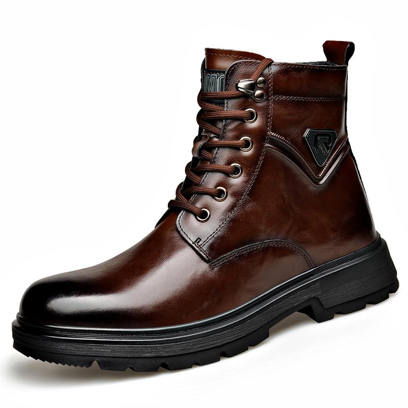 Autumn Winter Side Zipper Genuine Leather Boots for Men Casual Warm Cotton Work Shoes Man New Designer Ankle Boots Male