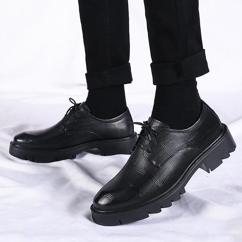 New Business Wedding Shoes Men Genuine Leather Sneakers British Formal Elevator Height Increase Insole 6CM Lift Black Man Shoes