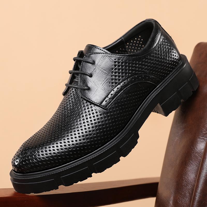 New Men Hollow Summer Platform High Heel 5/8/10 CM Height Growth Formal Men Derby Leather Shoes Man Wedding Dress Shoes Elevator