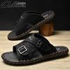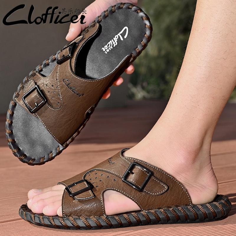 Men's Slippers Leather Flats Men Summer Non-Slip Casual Straight Slippers Unique Leather Half Drag Outdoor Walking Shoes