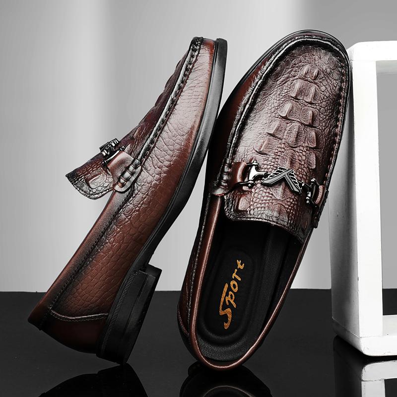 Fashion Genuine Leather Mens Loafers Moccasins Stylish Man Casual Shoes Handmade Formal Slip On Flats Crocodile Pattern Male Boat Shoes