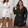 Plus Size Women's V-neck Solid Color Dress Autumn and Winter Sweater Skirt