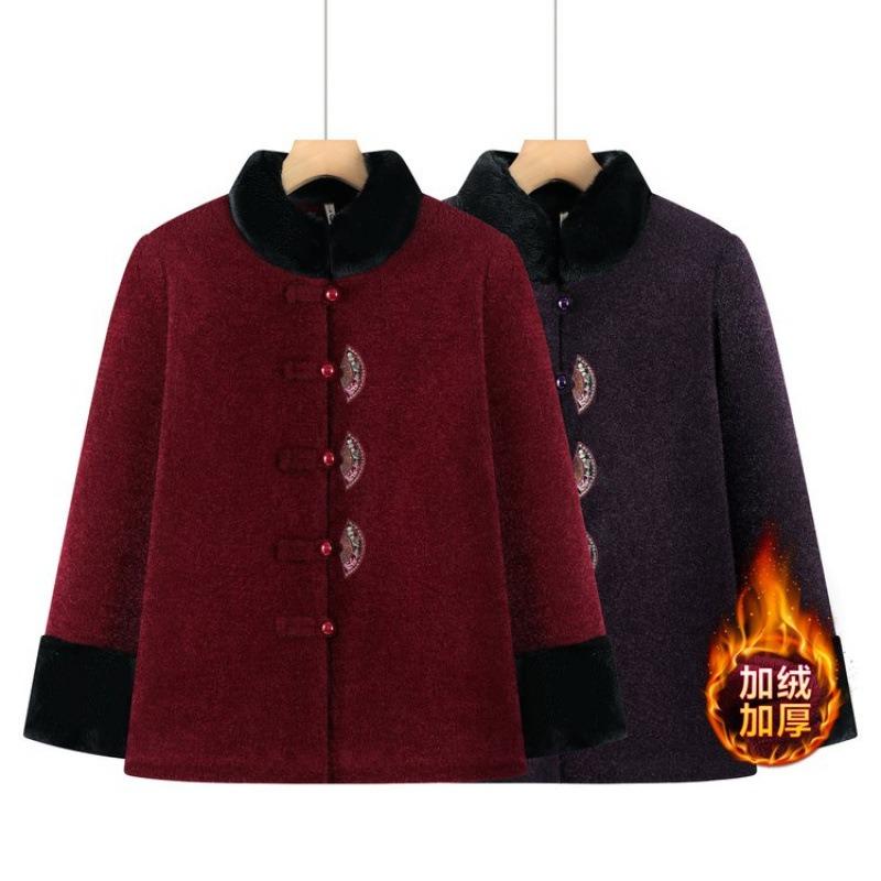 Winter Coat, Piled and Thickened Cotton-padded Coat, the Old Lady Has Festive Warm Clothes