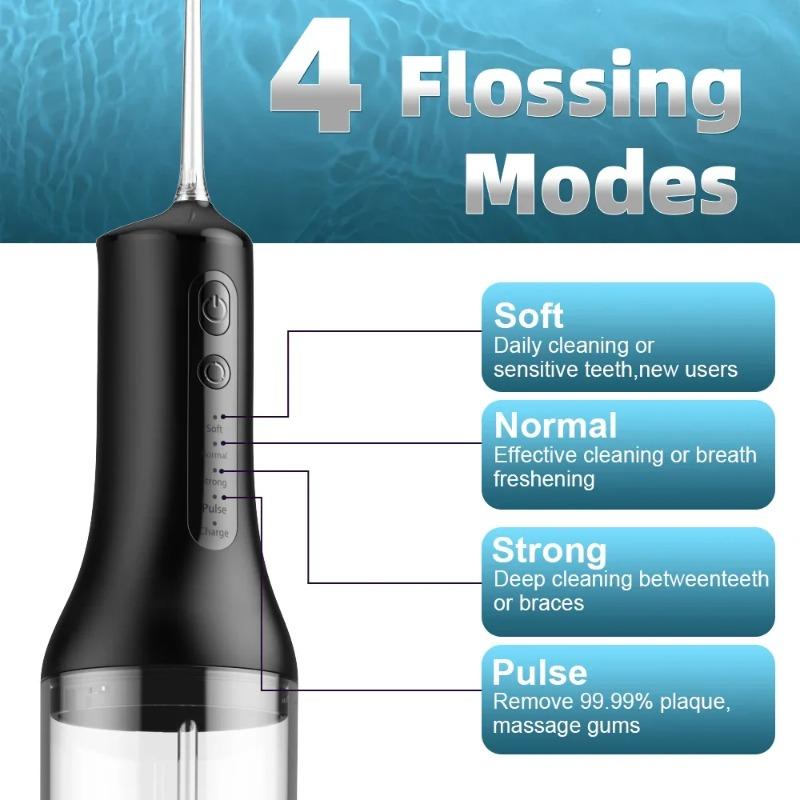 WaterPulse Water Flosser Portable Oral Irrigator USB Rechargeable 4 Mode 300ml Teeth Cleaner Toothbrush Oral Hygiene Clean Smart