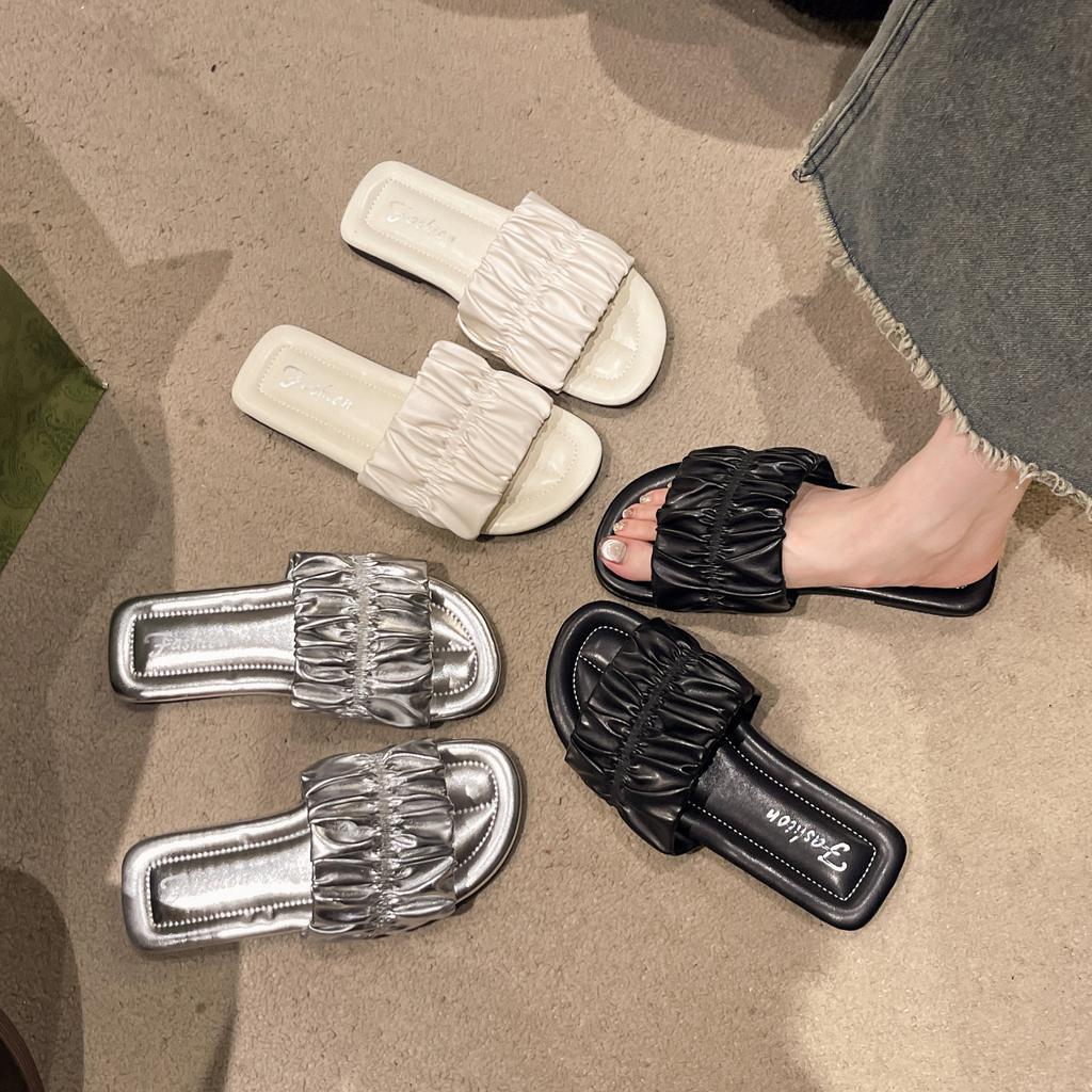 Large Size Women's Shoes 41-43 Fat Feet, Small Fragrant Style, Flat Bottom Cool Slippers, Women's Summer Wear with Skirts, Beach Flip-flops