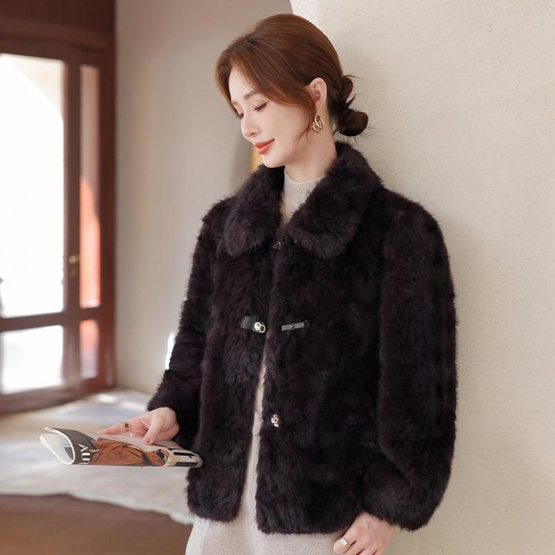 Today's New Mother Autumn and Winter Gold Mink Wear Fur In One of the Elderly Women's Woolen Coat
