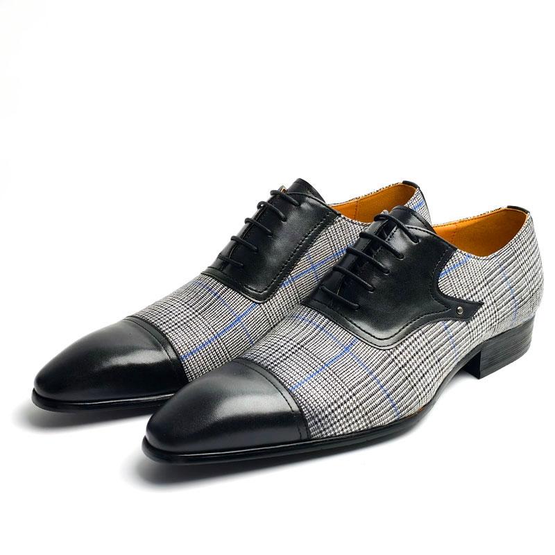 Fashion Men's Leather Shoes Denim+cow Leather Upper Material Lace Up Fashion Oxfords for Man Perfect For Business Wedding Office Wearing