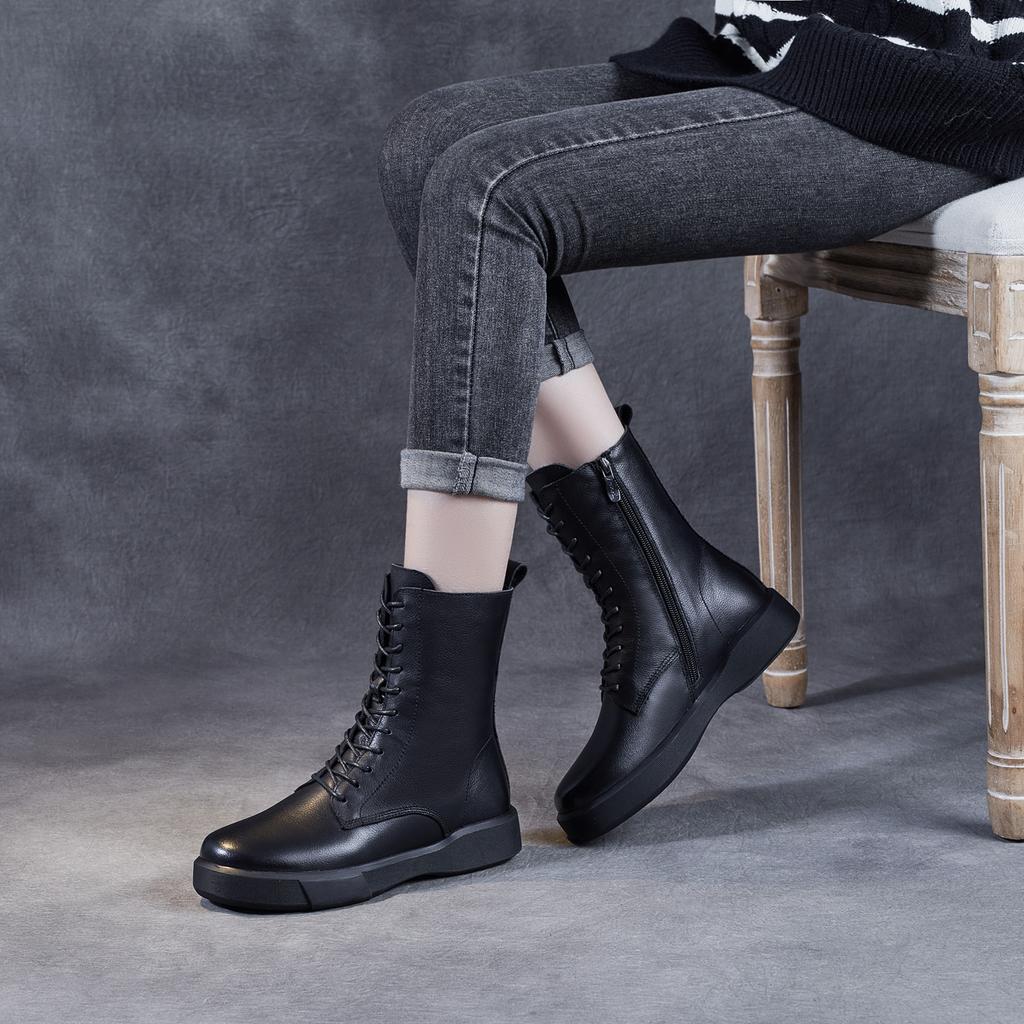Leather Martin Boots Platform Casual Women's Boots 2025 Autumn and Winter Women's Shoes Small Medium Boots Velvet Short Boots Women