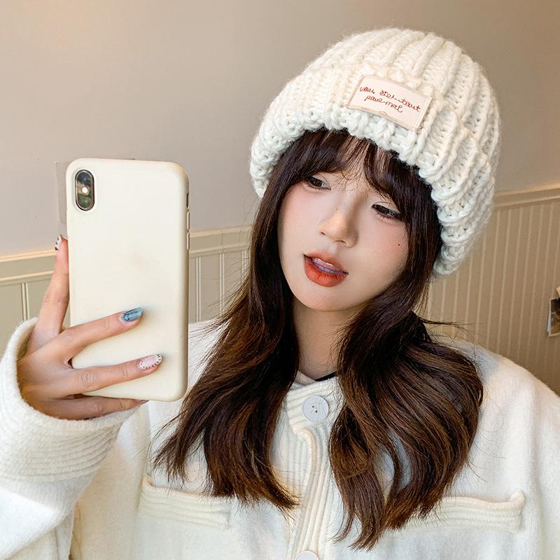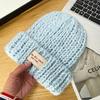 Big Head Circumference Knitted Hat for Women In Winter Korean Style All Match Big Head Thick Thread Pullover Hat for Women Showing Face Small Cold Hat
