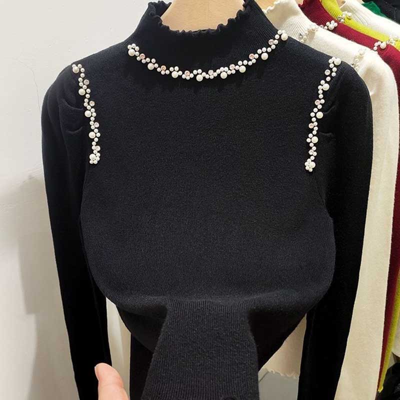 Sweater for Women Autumn Winter Thickened Warm Knitted Stretchy Long Sleeve High-neck Tops