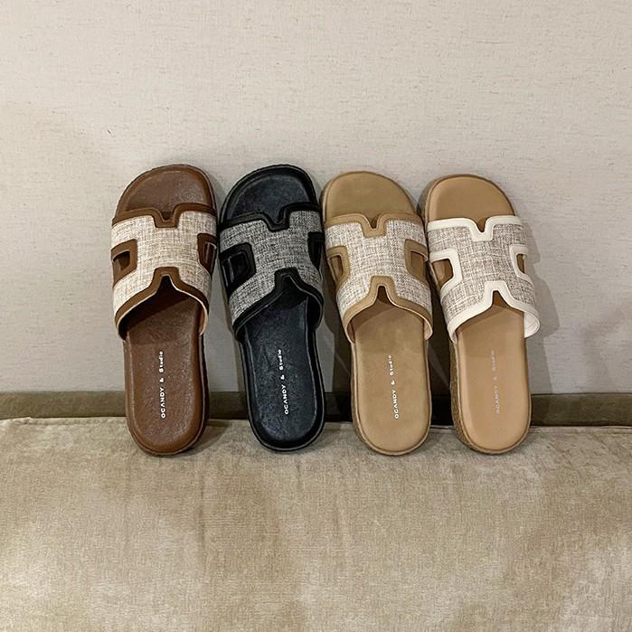 French Temperament Flat-bottomed Roman Cool Slippers Women's Summer Wear 2025 New One-word Drag Seaside Casual Lazy Shoes