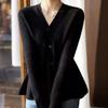 Cardigan Coat for Women Autumn Loose Long Sleeve Knit Cardigan V Neck Casual Solid Color Sweaters Jacket