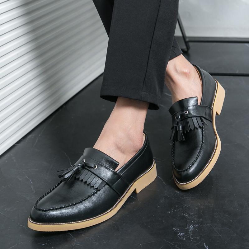 Men Classic British Style Leather Shoes Tassel Lightweight Loafers Casual Shoe Thick Platform Brand Business Dating Shoe