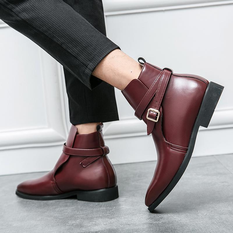 Party Dating Men's Ankle Boots Handmade PU Leather Chelsea Boots Slip On Business High Top Shoes Design Male Dress Botas