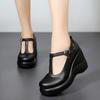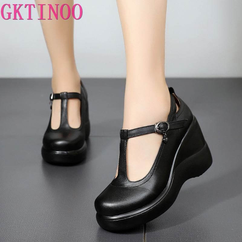 Fashion GKTINOO T-Strap Genuine Leather Wedges Shoes for Women 2025 High Heels Shoes Office Ladies Platform Shoes Mother Plus Size 34-43