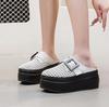 Fashion 8CM Weave Patent Leather 2025 Summer Women Fashion Hot Sale Platform Wedge Mujer Comfy Sandals Microfiber Slip On Shoes Slippers