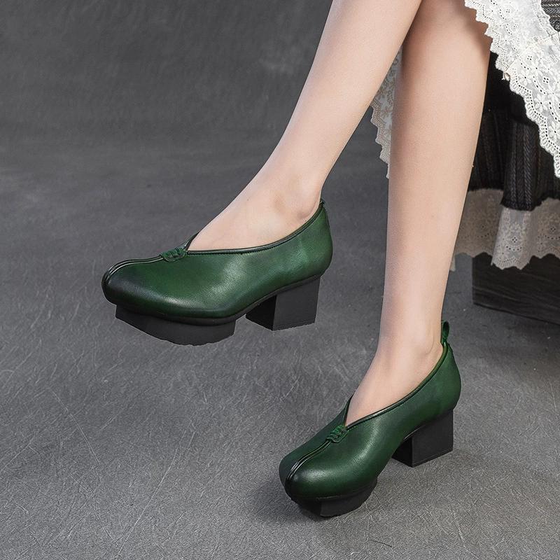Fashion GKTINOO Spring Autumn Ethnic Style Round Toe High Heels Mom Shoes Cowhide Platform Retro Genuine Leather Pumps Women's Shoes