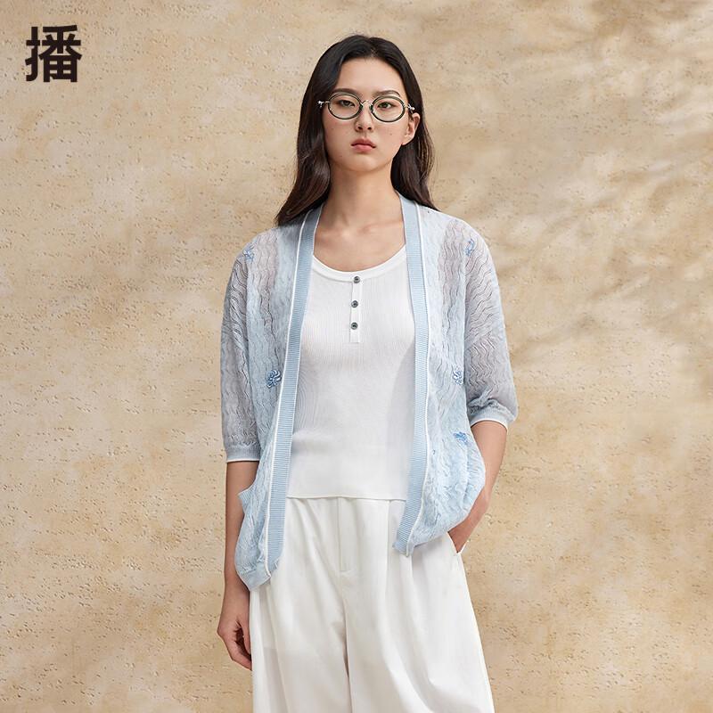 broadcast Women's Textured Embroidered Short Sleeve Cardigan