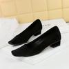 Fashion Comfortable Elegant Square Toe Shallow Mouth Simple Plain Suede Pedicure Women Thick Heel Low Heel Professional Ol Single Shoes