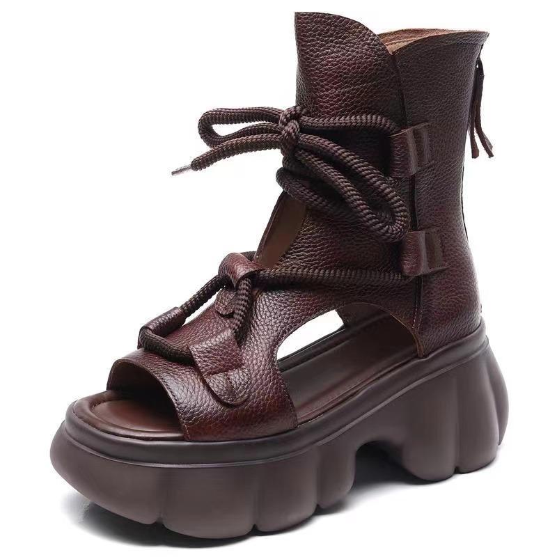Fashion 2024 New High Quality Women Sandals Handmade Retro Wedges Heel Sandals Ladies Summer Back Zipper Platform Roman Cool Boots