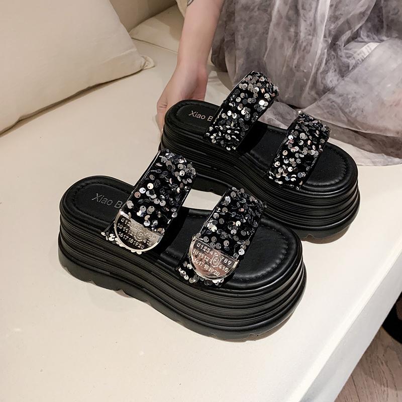 Fashion 8CM High Platform Slippers Women Summer Bling Fashion 2025 New Increase Heels Sandals Casual Muffin Flip-flops Heels Beach Shoes
