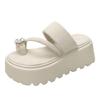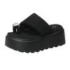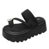 Fashion 8CM Women High Platform Slippers Summer Rhinestone Beach Flip-Flops Ladies Wedge Heels Flock Shoes Woman Outside Chunky Sandals