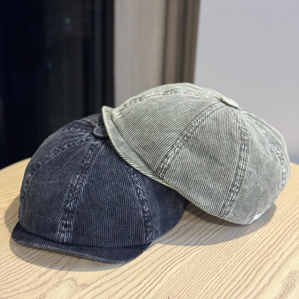 Distressed Corduroy Peaked Cap for Women In Autumn and Winter Face Showing Small Flip Up Forward Hat Fashionable and Versatile Beret for Men