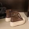Simple Lace-up High-top Shoes Casual Board Shoes Women's Autumn and Winter Fashion Thick-soled Heightening Flat-soled Sports Shoes White Shoes Tide