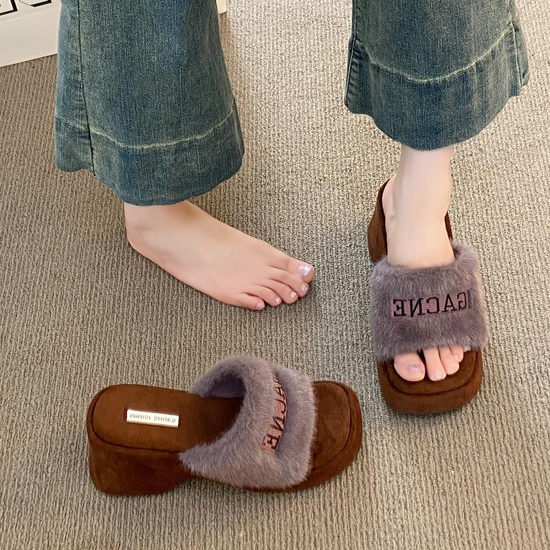 Thick-bottomed Fluffy Slippers Female 2025 New Autumn Korean Version High-end Temperament French Fairy Muffin Slippers Female
