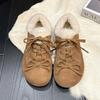 Fleece Cotton Shoes Women's Winter 2025 New Maillard Lace-up Bow Fleece Warm Casual Height-increasing Fleece Cotton Shoes