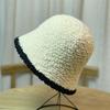 Black White Edge Knitted Plush Fisherman Hat for Women Autumn and Winter New Style Large Head Circumference Bucket Hat Japanese Style Small Face
