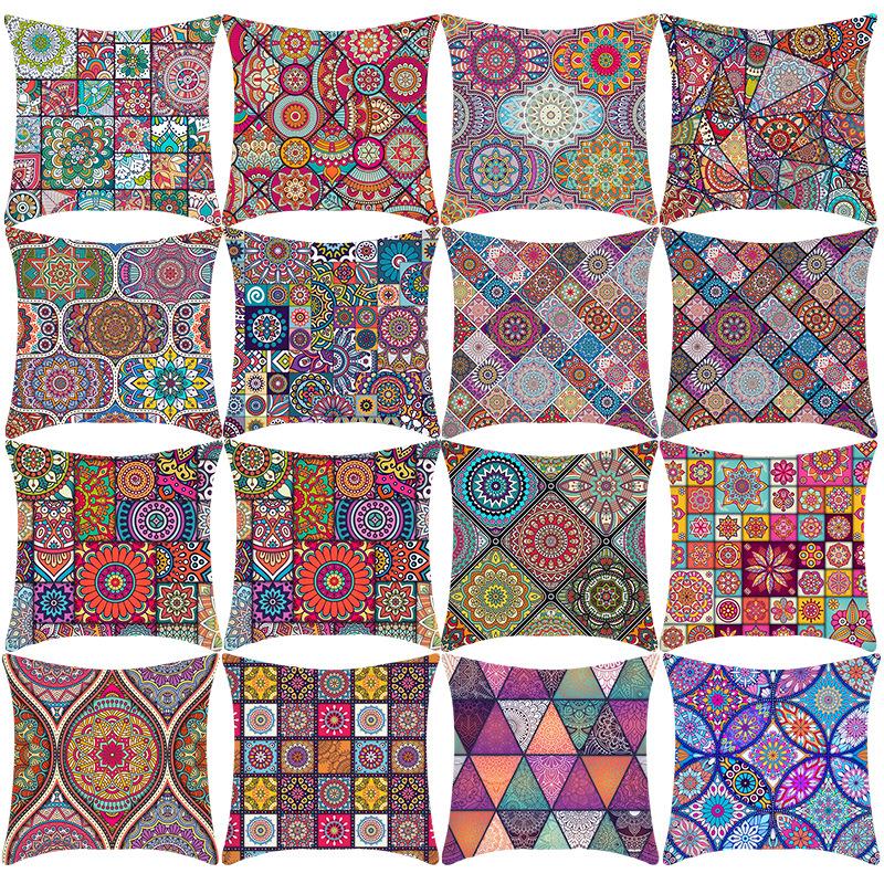 Spliced Colorful Mandala Traditional Ethnic Pattern Car Throw Pillows, Sofa Bay Window Pillow Covers and Cushions