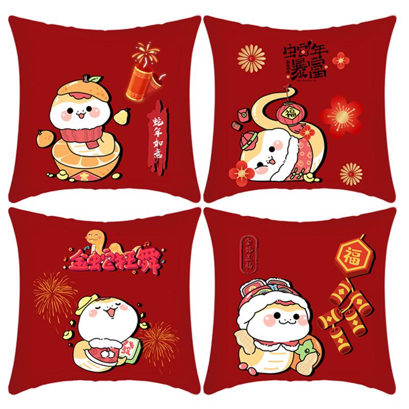 New Year Red Pillow Cushion New Year's Pillow Reversible Pattern Spring Festival Festive Backrest