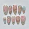 24PCS Sweet Roses False Nails with Glue Pink Gradient Bow Pearl French Fake Nails for Girls Artificial Wearable Almond Press On