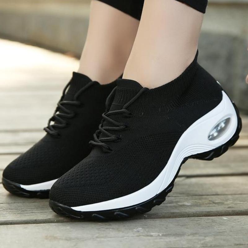 Fashion Women Platform Shoes Knitted Mesh Casual Sneakers Lace-up Outdoor Shoes for Walking Traveling Shoes