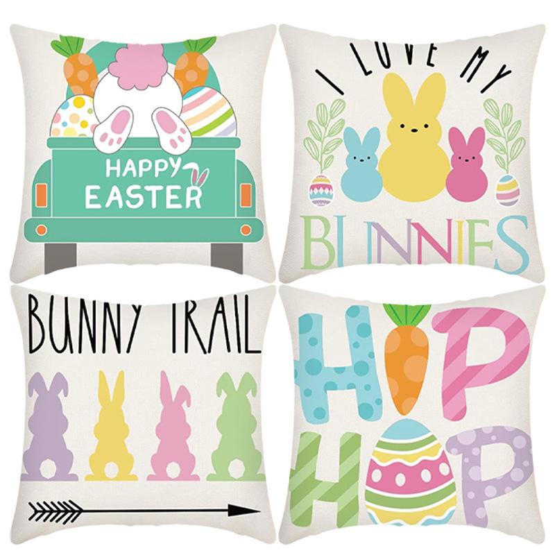 New Easter Pillowcase Cute Rabbit Short Plush Linen Cushion Pillowcase