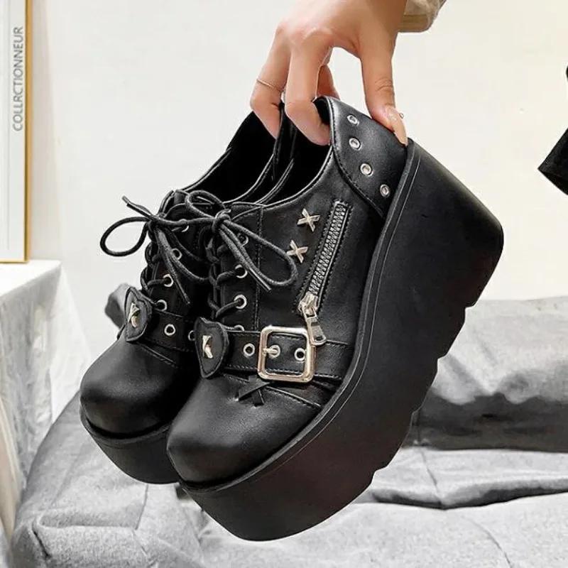 9CM Punk Style Gothic Pumps Women New Sole Brand Platform Shoes Wedge High Heels Party Cosplay Designer Lolita Shoes Big Size 42