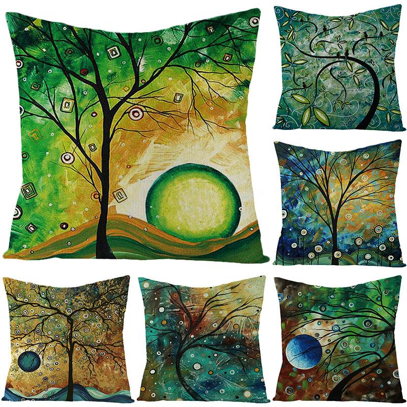 Home Oil Painting Tree Pillow Cover Polyester Sofa Car Pillow Cushion Cover Combination Pack